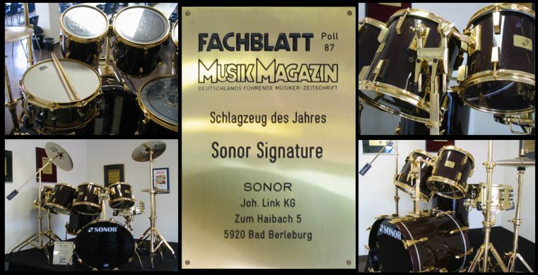 Die Sonor Signature Line steht selbst heute noch als ein Synonym für First Class Quality. Kein Schlagzeugbauer der Welt produzierte jemals wieder ein solch vollkommenes und in sich stimmiges Drumset. 1992 übertrafen sich die Verantwortlichen der Firma Sonor selbst, indem sie der Fachwelt das Sonor Signature Jet Set präsentierten. Es wurde „Limited Edition“ benannt, da eine weltweite maximale Auflage von 50 Sets garantiert wurde. Es handelt sich um Trommeln, die mit 24 Karat vergoldeter Hardware ausgestattet wurden, Trommeln für die ein edles hochglanzlackiertes Ahornholz verbaut wurde, Trommeln für die selbst ein eigenes Typenschild konzipiert wurde. Die hochglanzlackierte Black Maple Oberfläche begeistert völlig. Eine Komposition sondergleichen, und gerade deshalb auch ein nahezu unerschwingliches Instrument. Am 31.12.1992, dem letzten Bestelltermin lagen der Sonor Geschäftsführung gerade einmal 5 Aufträge vor. Auch durch diese Tatsache ist der Wert eines Jet Sets heute in monetären Größen nicht zu beziffern. Dieses Schlagzeug inkl. Hardware kostete damals ca. 30.000 DM. Eines dieser Legenden steht im Sonorwerk selbst. Unverkäuflich, versteht sich! "Mein eigenes Jetset ist natürlich auch unverkäuflich, versteht sich ebenfalls!" - DJ |